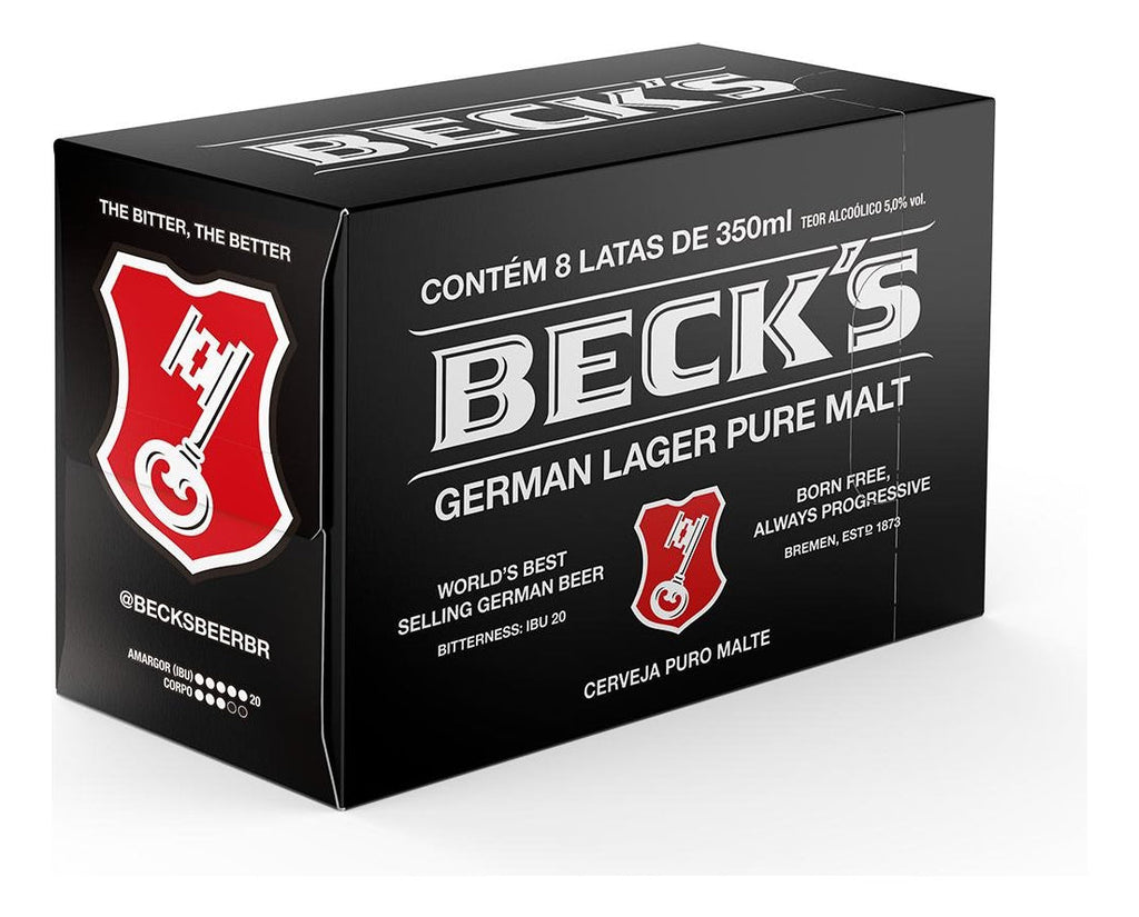 Beck’s é uma legítima German Lager Puro Malte, que segue à risca a lei da pureza da cerveja alemã desde 1873. Seu IBU (unidade internacional de amargor) é 20. O resultado é uma cerveja de amargor intenso, sabor marcante e excepcional pureza. Ela é provocante, cheia de personalidade e com um sabor característico e único. A cerveja alemã mais vendida no mundo.