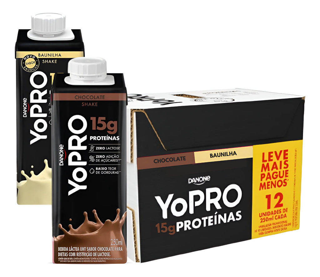 YoPRO 15g de Proteína Bebida Láctea Sabor Chocolate e Baunilha* (250ml) - Danone